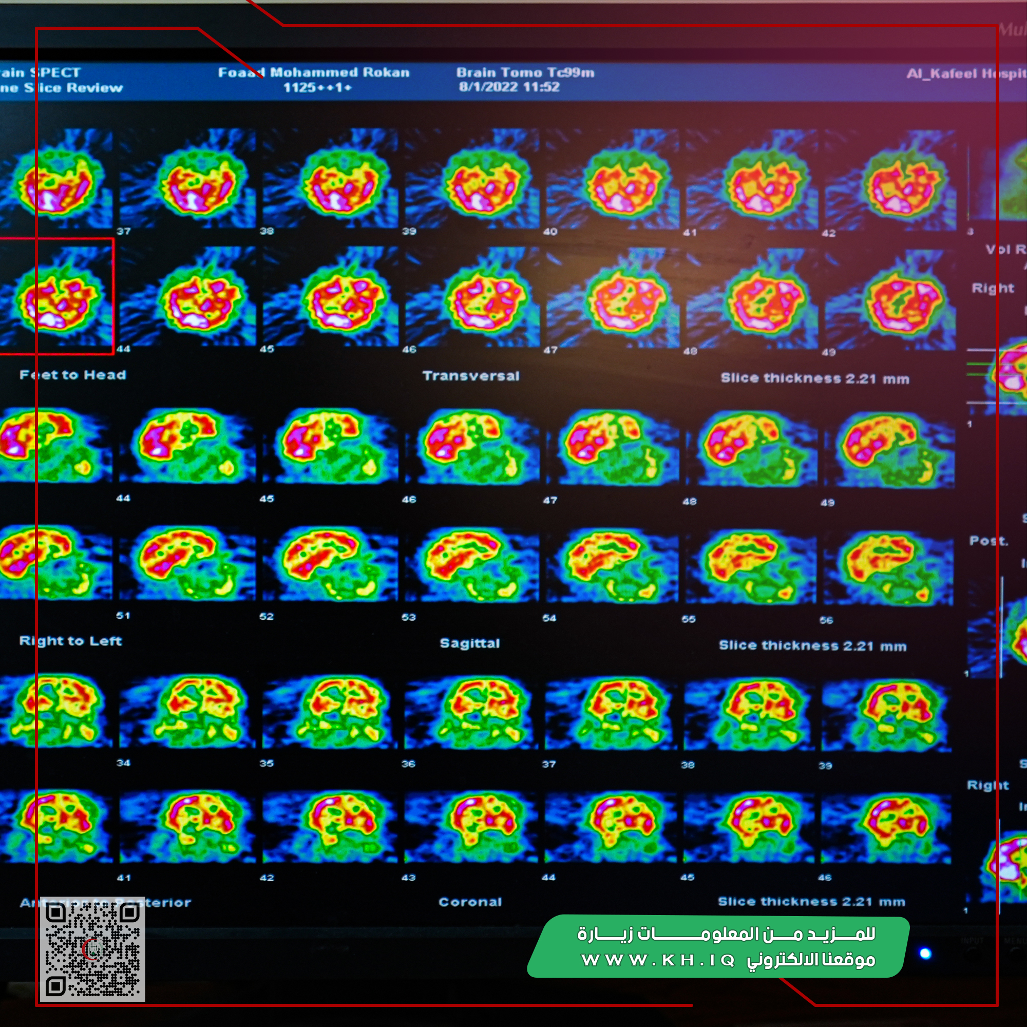 وقال اختصاصي الطب النووي الدكتور احمد كنعان التميمي ان هذا الاجراء هو الاول من نوعه في كربلاء المقدسة والعراق بشكل عام ويوفر بيانات جديدة يستفيد منها اطباء الدماغ والجملة العصبية.