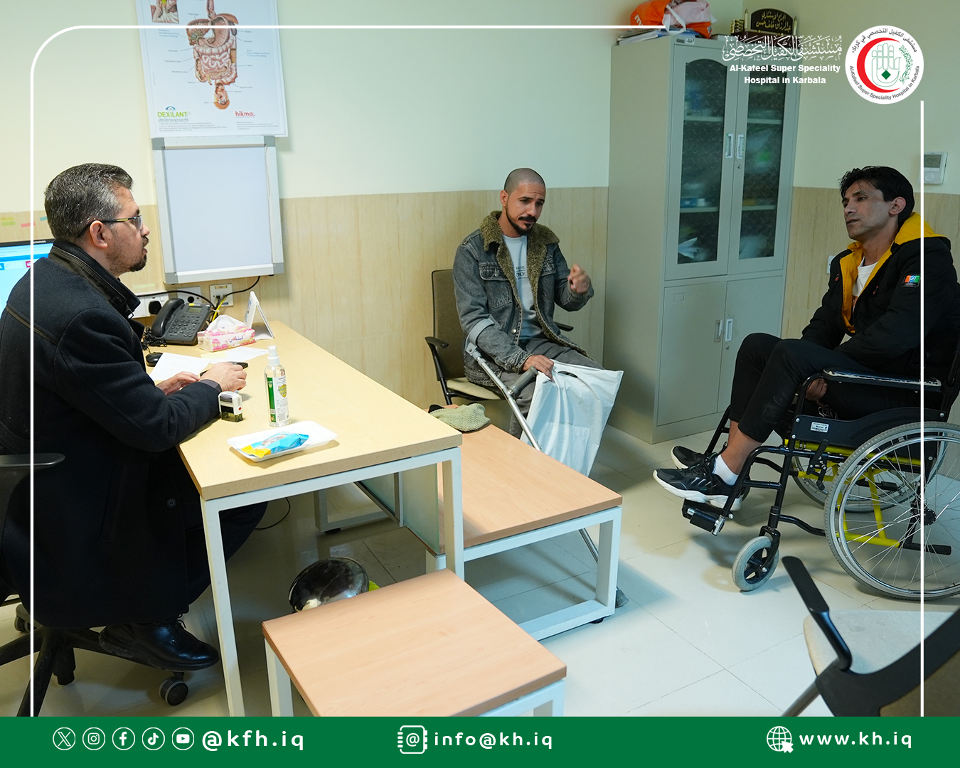 Al-Kafeel Specialized Hospital in Holy Karbala received a number of wounded Popular Mobilization Forces in various medical specialties who were sent by the Popular Mobilization Authority, in cooperation with the Iraqi Ministry of Oil, to receive consultation and treatment, while the hospital was described as a role model in providing medical and therapeutic services.