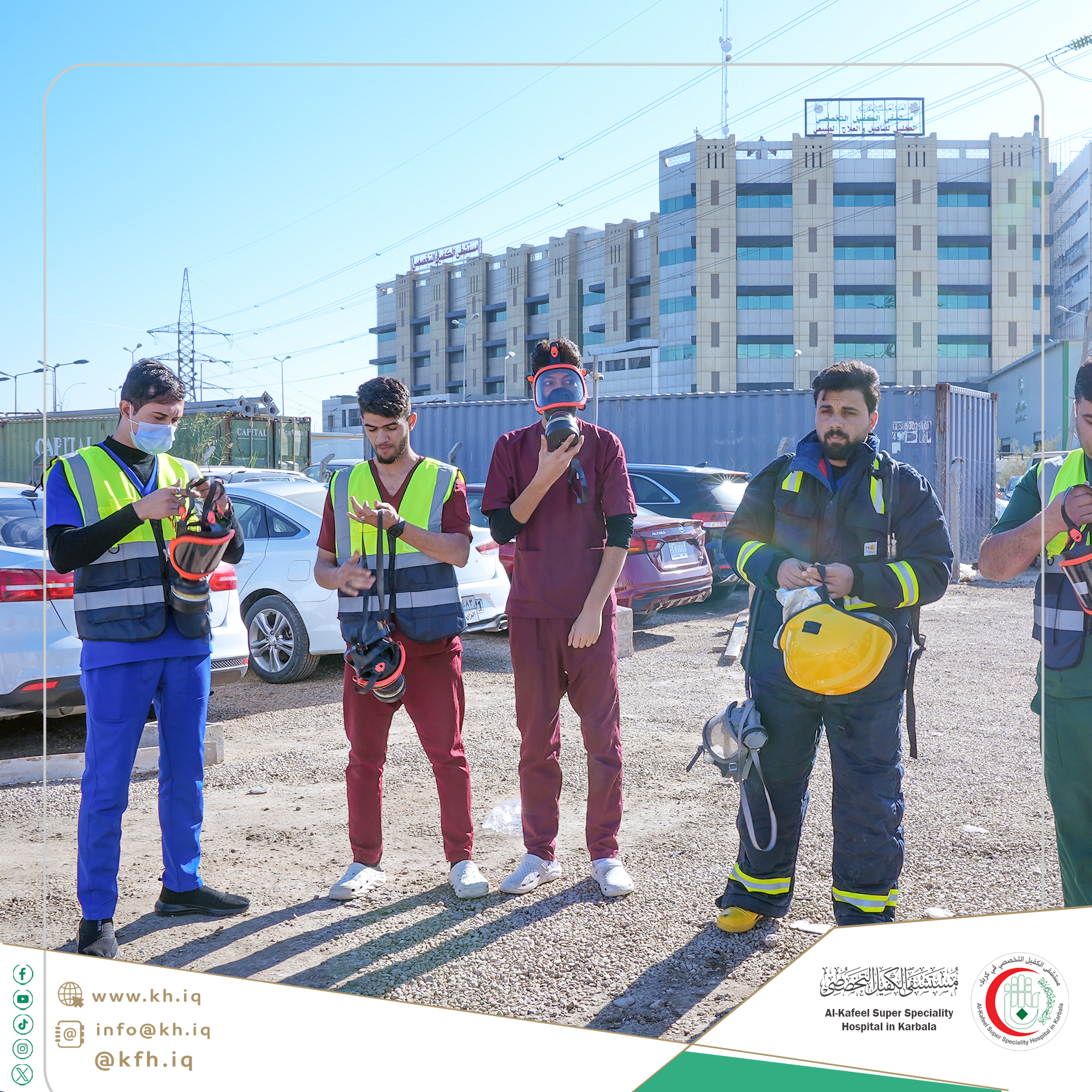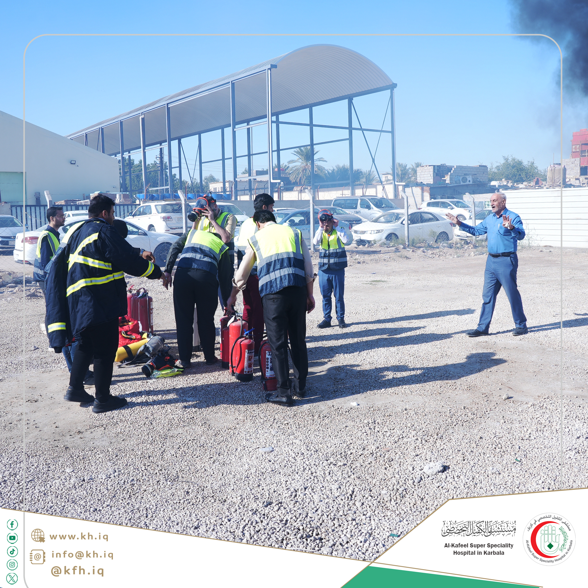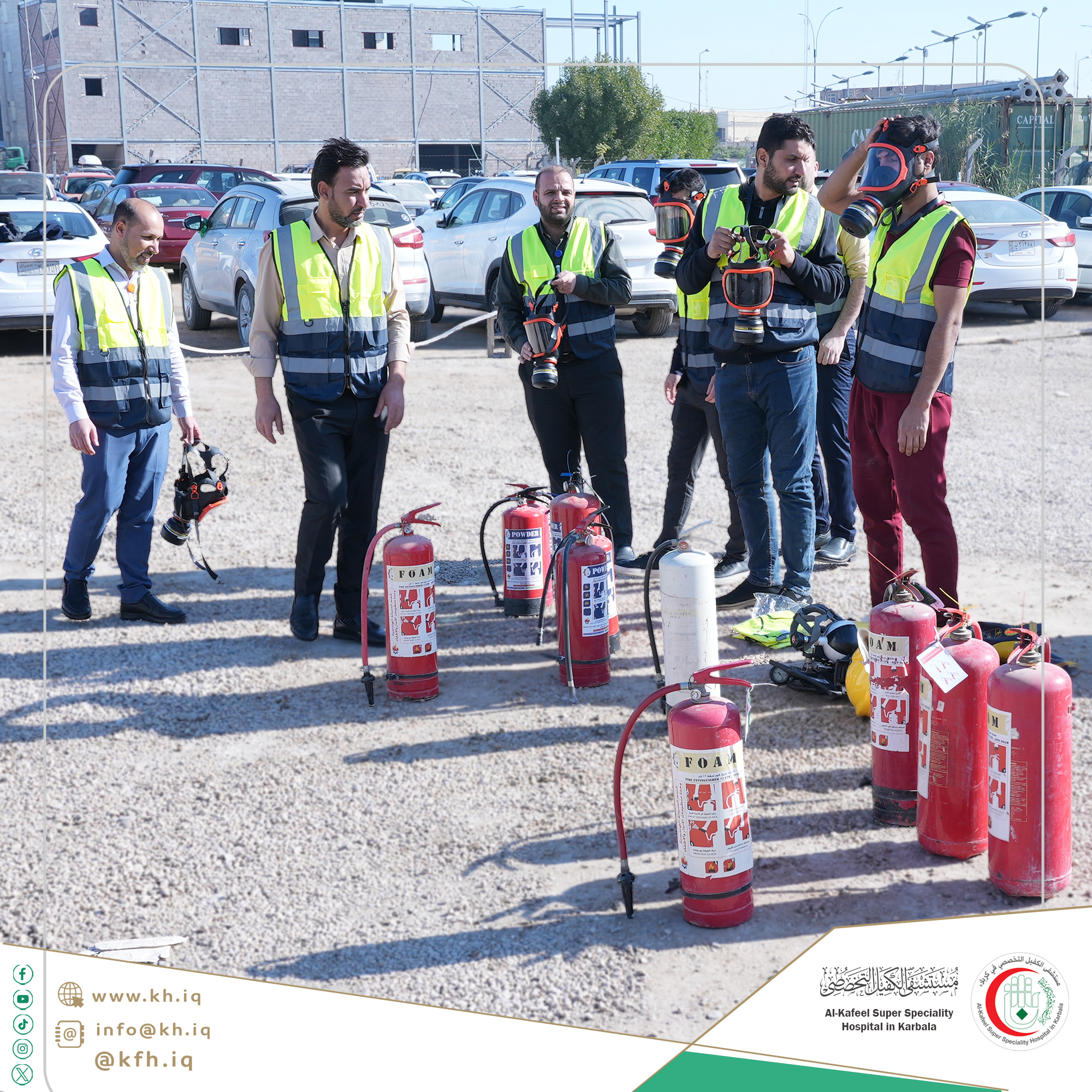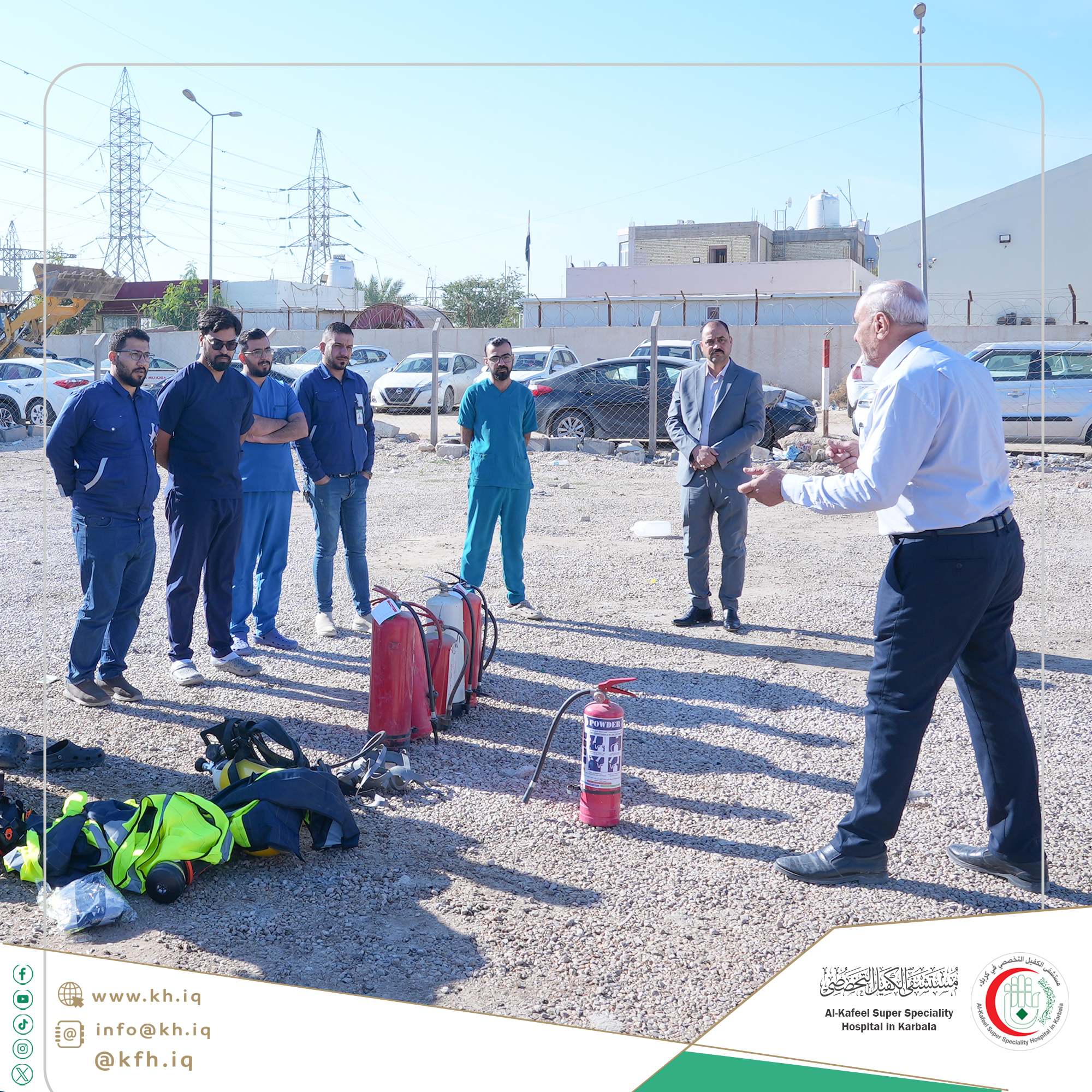 يعمل مستشفى الكفيل التخصصي على تعزيز ثقافة السلامة العامة لدى منتسبيه ورفع مستوى إستعدادهم للتعامل مع أي طارئ قد يحدث لاسيما بمجال الدفاع المدني، لذا فهو يُنظم بشكل دوري تدريبات نظرية وعملية يُحاضر فيها مختصين.