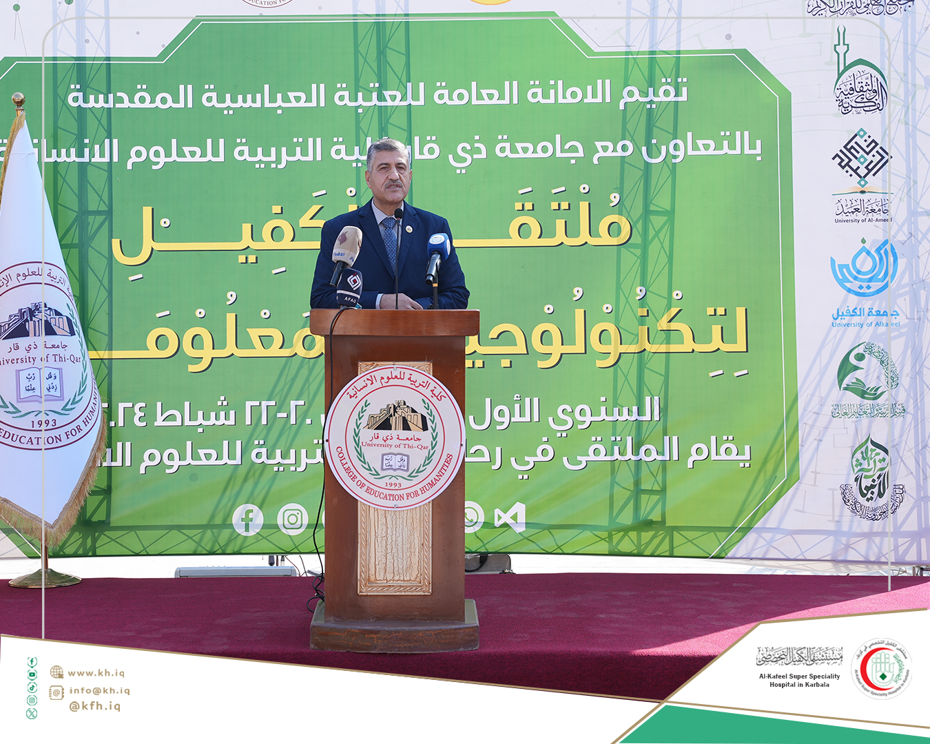 جاء ذلك على هامش ملتقى الكفيل السنوي الأول لتكنولوجيا المعلومات، الذي اُقيم في جامعة ذي قار برعاية الأمانة للعتبة العباسية المقدسة، والتعاون مع كلية التربية للعلوم الإنسانية.