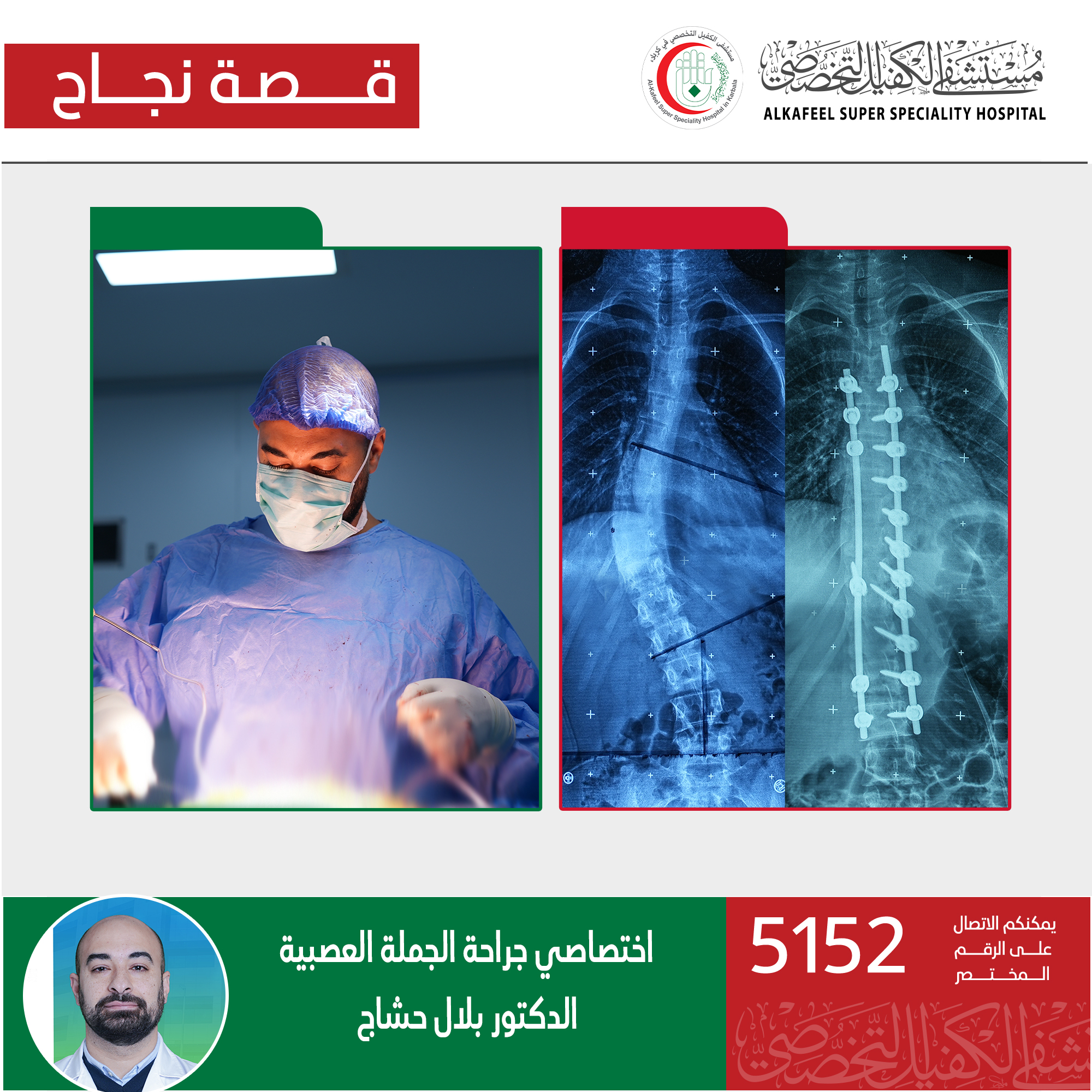 المتقدمة في مستشفى الكفيل التخصصي، نجاحه بعملية لتعديل إعوجاج العمود الفقري