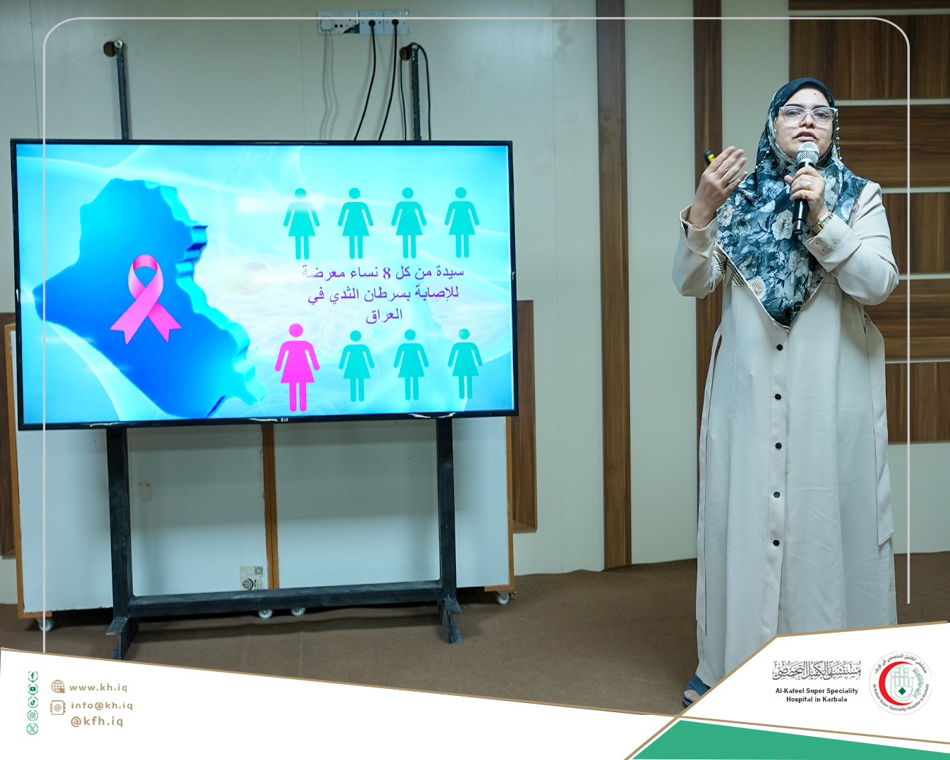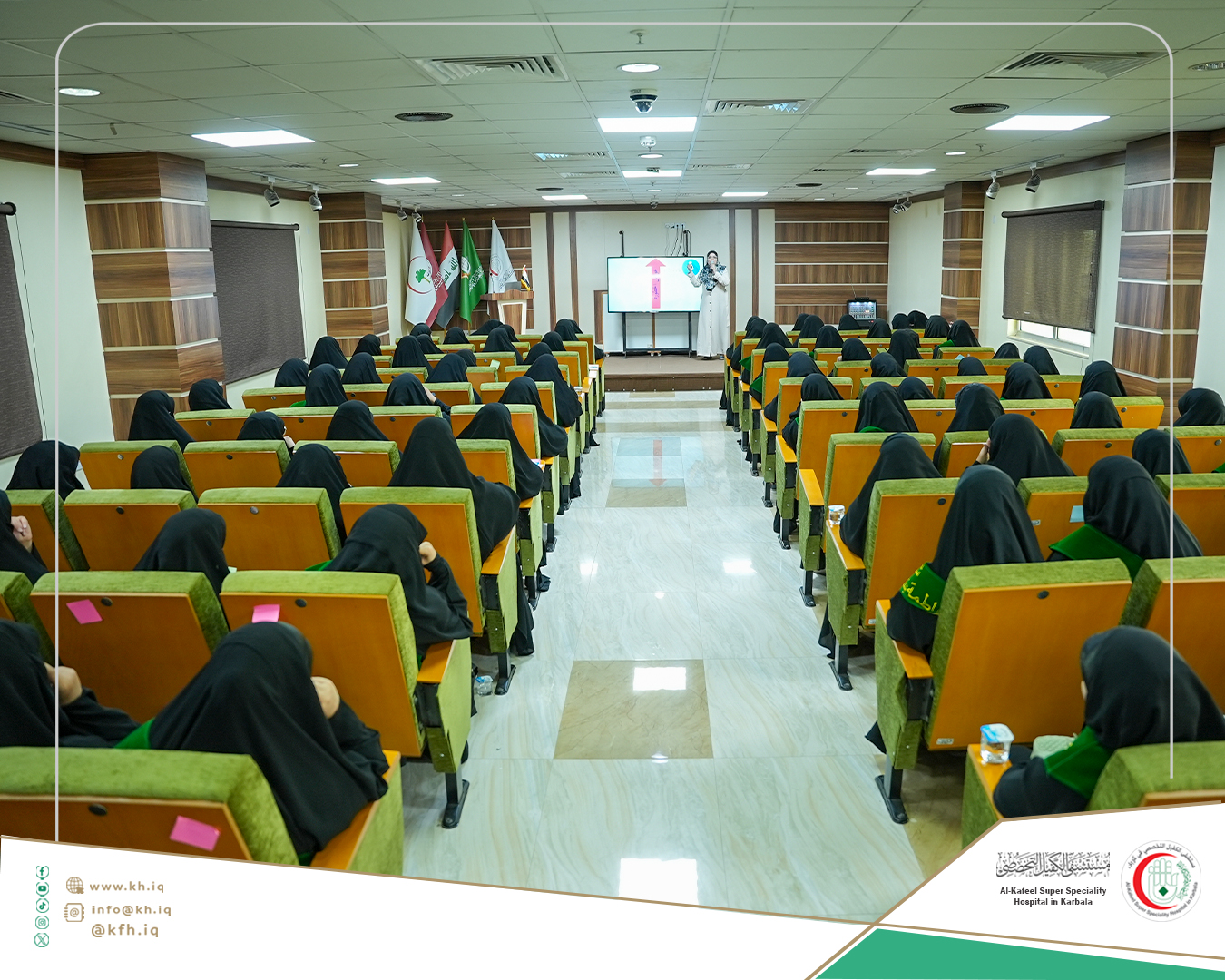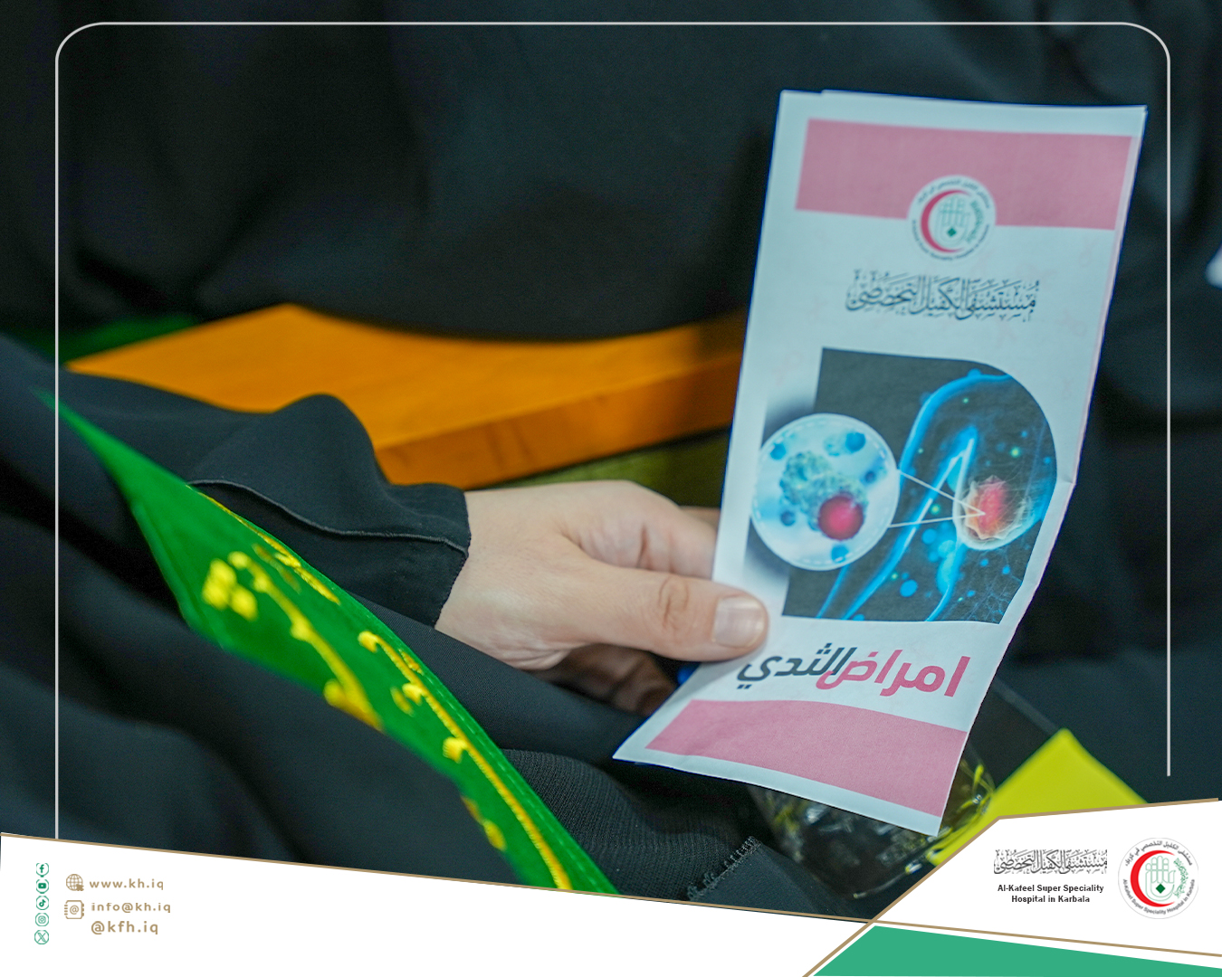 نظمت إستشارية الكشف المبكر عن أمراض وسرطان الثدي في مستشفى الكفيل التخصصي، محاضرة تثقيفية توعوية لمنتسبات وطالبات شعبة فاطمة بنت اسد للدراسات القرآنية التابعة للعتبة العباسية المقدسة، فيما شهدت المحاضرة التركيز على أهمية الكشف المبكر عن سرطان الثدي ومعالجته في بدايته.
