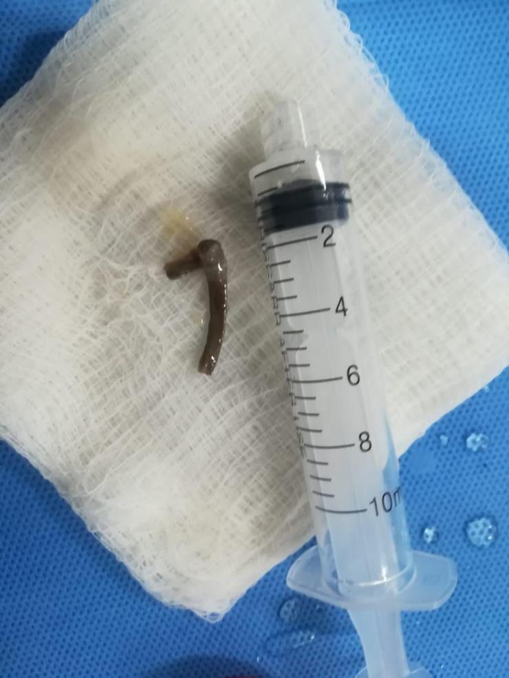 لافتاً الى، انه بعد أخذ التاريخ المرضي للمريض تبين انه قبل ثلاثة اعوام تناول وجبة طعام مكونة من قطع الدجاج خلالها اصيب بغصة اثناء البلع ومنذ ذلك التأريخ وهو ينفث دماً.