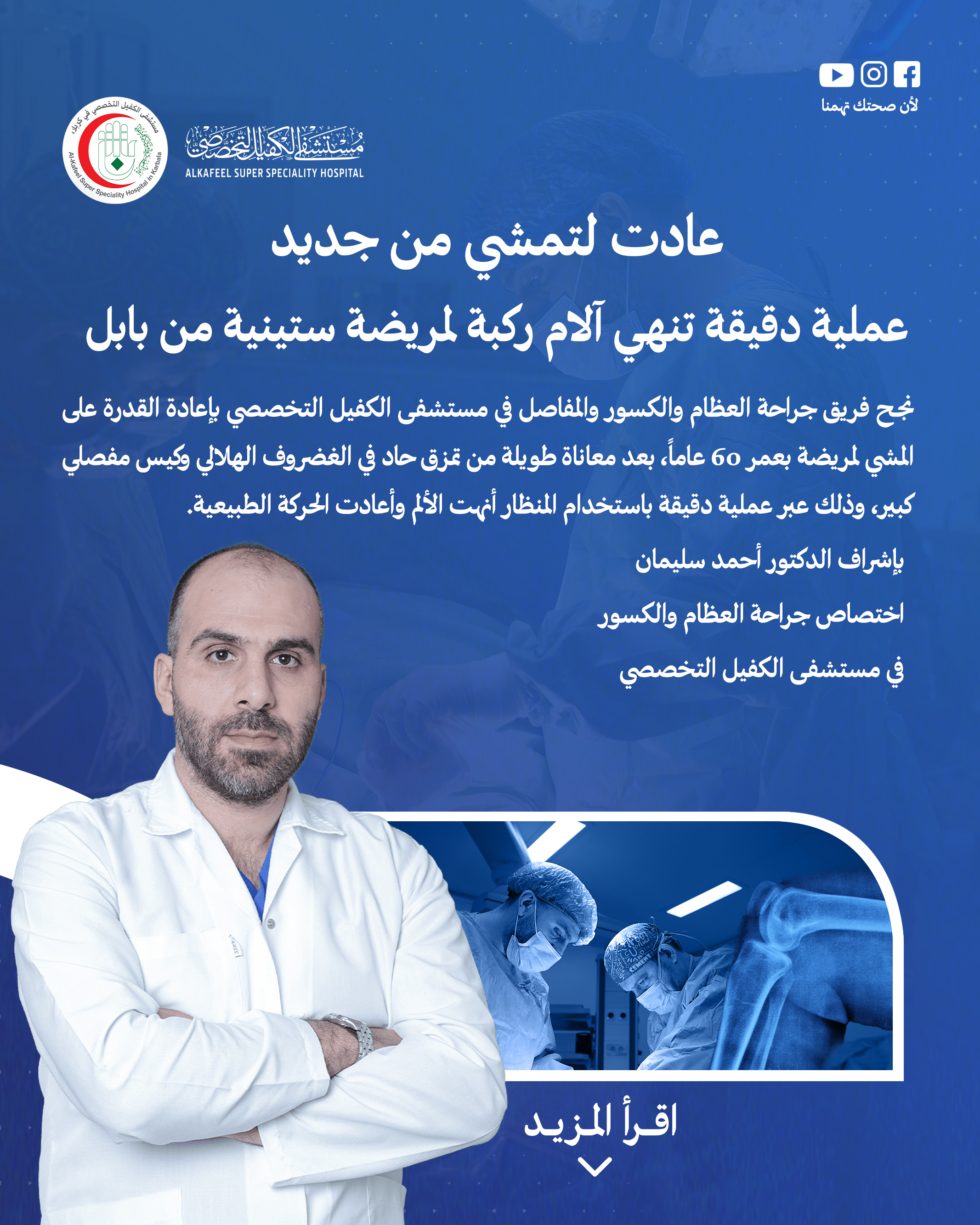 لسنوات، كانت "الحركة" حلماً صعب المنال بسبب تمزق حاد في الغضروف الهلالي وكيس مفصلي كبير جداً جعل كل خطوة بمثابة معركة، لكن الإرادة والطب اجتمعا ليغيرا الحكاية.