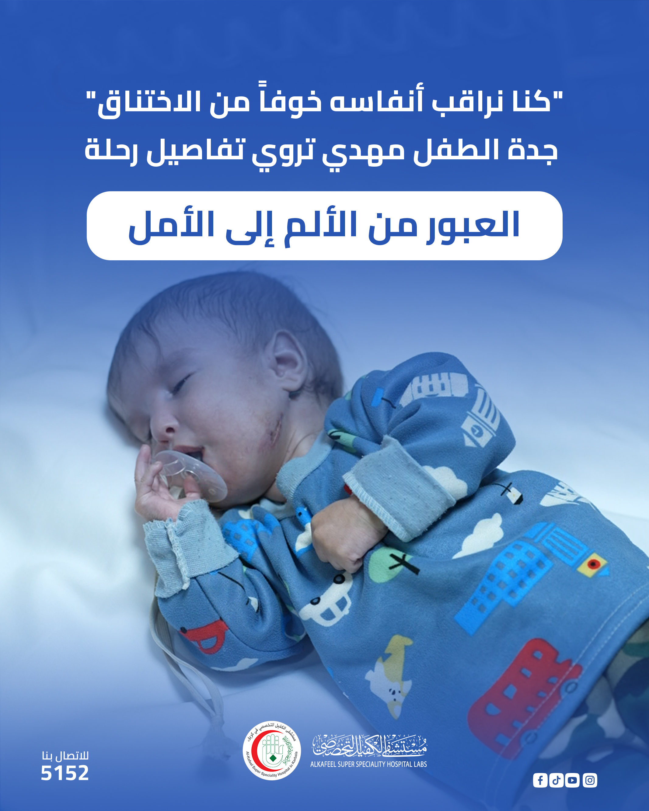 بصوتٍ يمتزج فيه الفخر بالامتنان، تروي لنا جدة الطفل "مهدي" قصة حفيدها الذي ولد ليواجه معارك صحية قاسية منذ الساعات الأولى لإبصاره النور، وكيف استعاد حياته بفضل