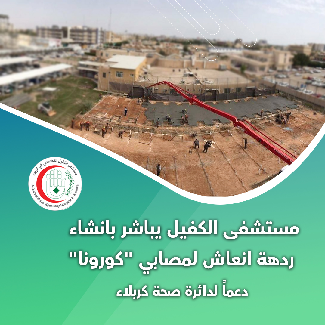 أعن مستشفى الكفيل التخصصي المباشرة بإنشاء ردهة إنعاش خاصة لجناح الحميات في مدينة الإمام الحسين (ع) الطبية في كربلاء، وفيما بين أن هذا المشروع جاء دعماً من العتبة العباسية المقدسة لدائرة الصحة لمواجهة أزمة فيروس "كورونا" في المحافظة.